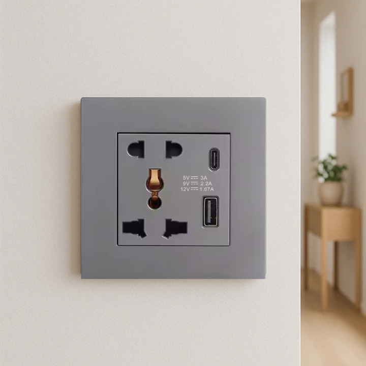 Streamline your power needs with a sleek socket featuring USB & Type-C charging.